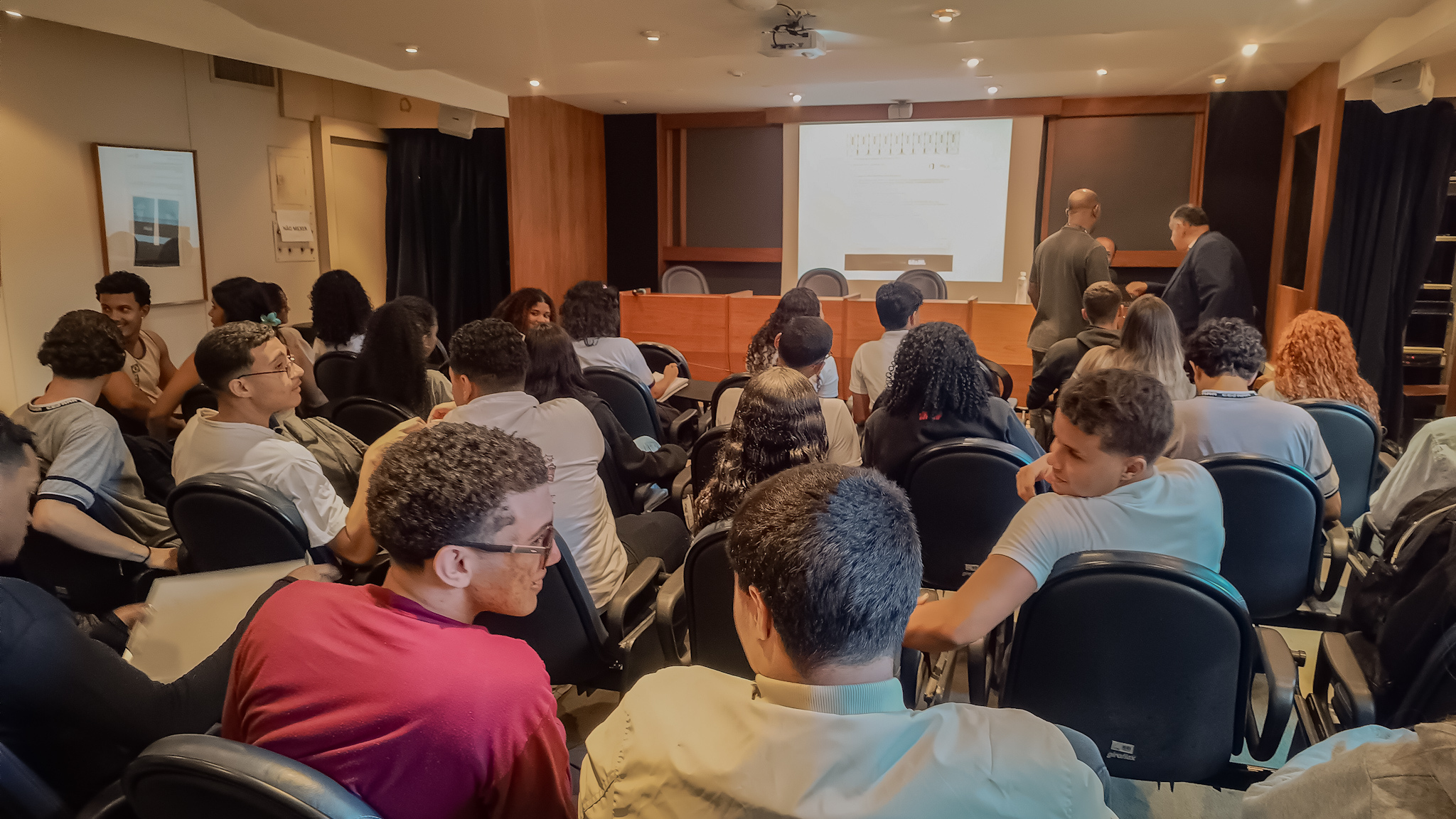 Em situação atípica em muitos espaços de pesquisa e rincões acadêmicos no mundo, a Fundação Casa de Rui Barbosa, em Botafogo, se viu invadida por estudantes do Colégio Estadual Professora Jeannette de Souza Coelho Mannarino, de Campo Grande. Os adolescentes, moradores desta Zona Oeste profunda, foram participar no dia 18 de agosto do encontro conduzido pelo Prof. Vagner Gomes, professor do próprio colégio, doutorando pela Universidade Federal do Estado do Rio de Janeiro e colunista do Voto Positivo. O encontro foi promovido pelo pesquisador da Casa, Julio Aurélio Vianna Lopes.